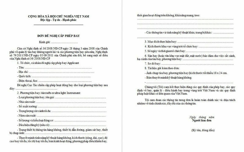 Mẫu đề nghi cấp phép bay (Tải xuống tại đây)